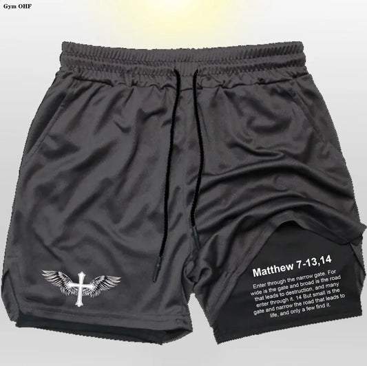Pantalones cortos de entrenamiento de alto rendimiento 2 en 1 Pro Layer Revena™ “Matthew 7-13,14”