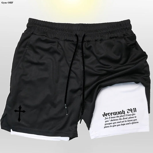 Shorts de entrenamiento de alto rendimiento 2 en 1 Pro Layer Revena™ “Jeremías 29:11”