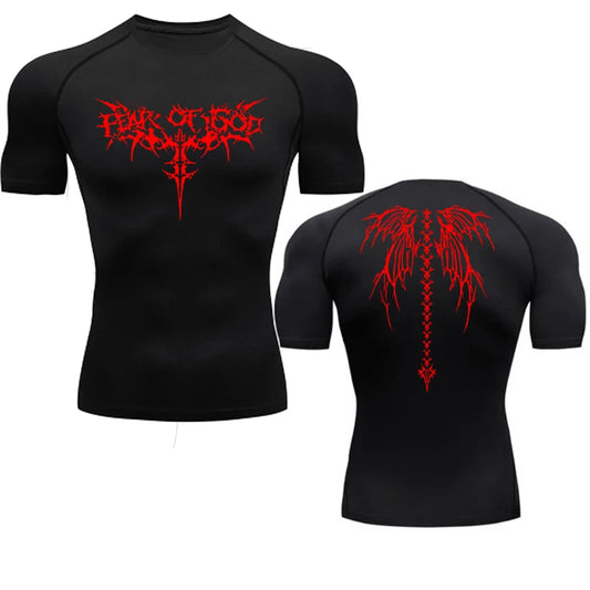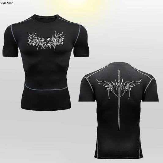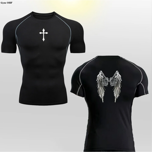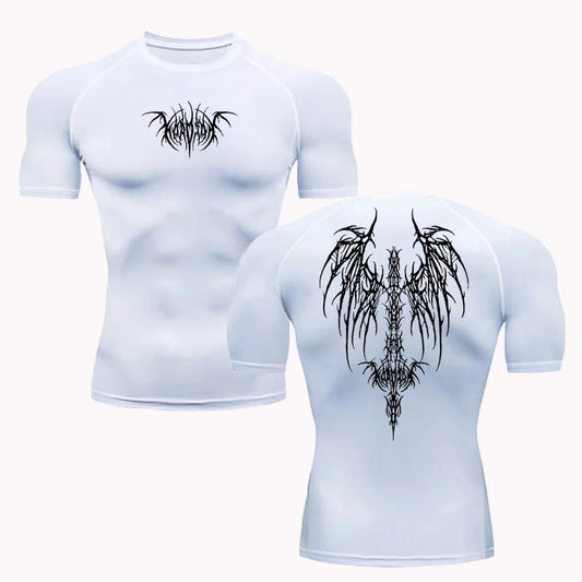 Short Sleeve Revena™ "Fallen Seraphim" Pattern Elastic Compression Shirt