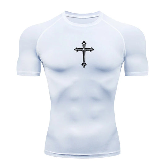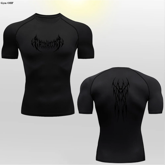 Short Sleeve Revena™ "Gothicah" Pattern Elastic Compression Shirt