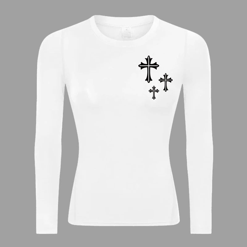 Long Sleeve Woman's Revena™ "Triple Cross" Pattern Elastic Compression Shirt
