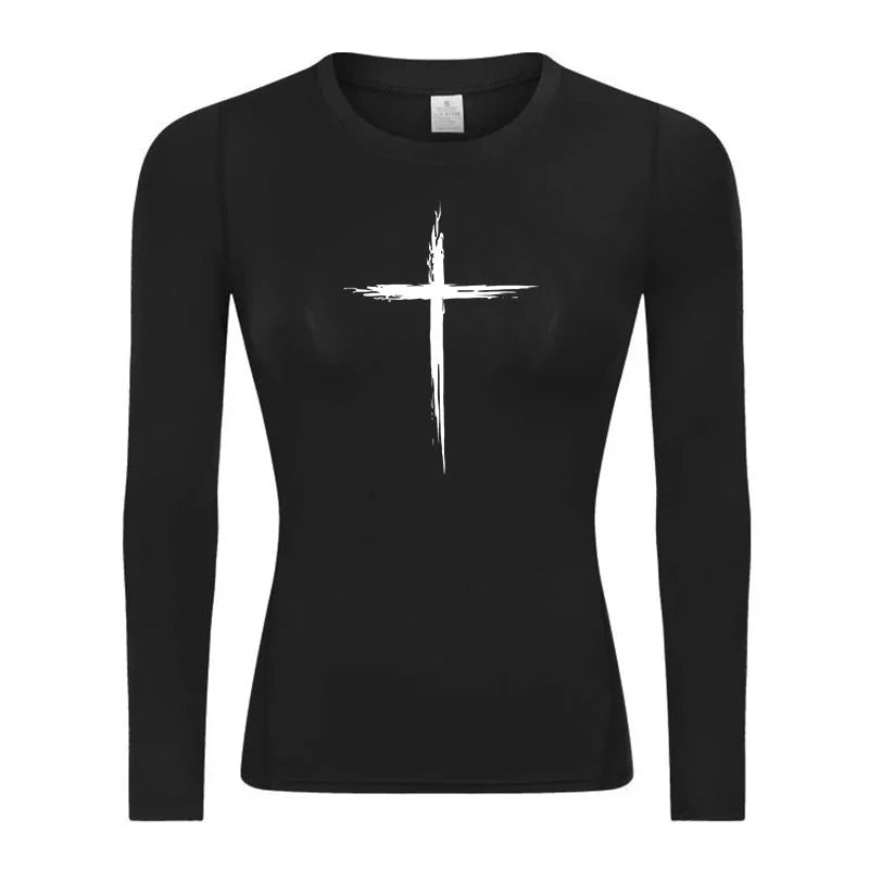 Long Sleeve Woman's Revena™ "Sketch Cross" Pattern Elastic Compression Shirt