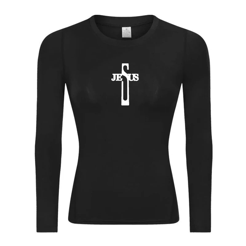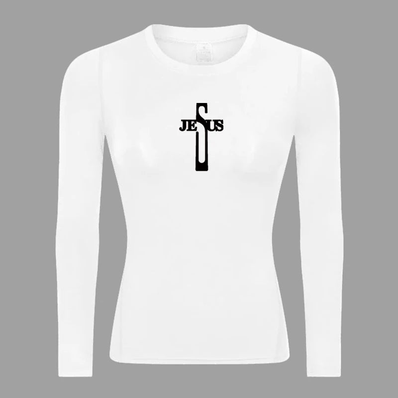 Long Sleeve Woman's Revena™ "Jesus Cross" Pattern Elastic Compression Shirt