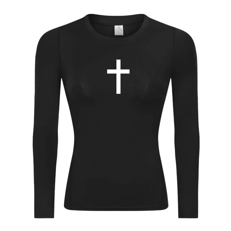 Long Sleeve Woman's Revena™ "Simple Cross" Pattern Elastic Compression Shirt