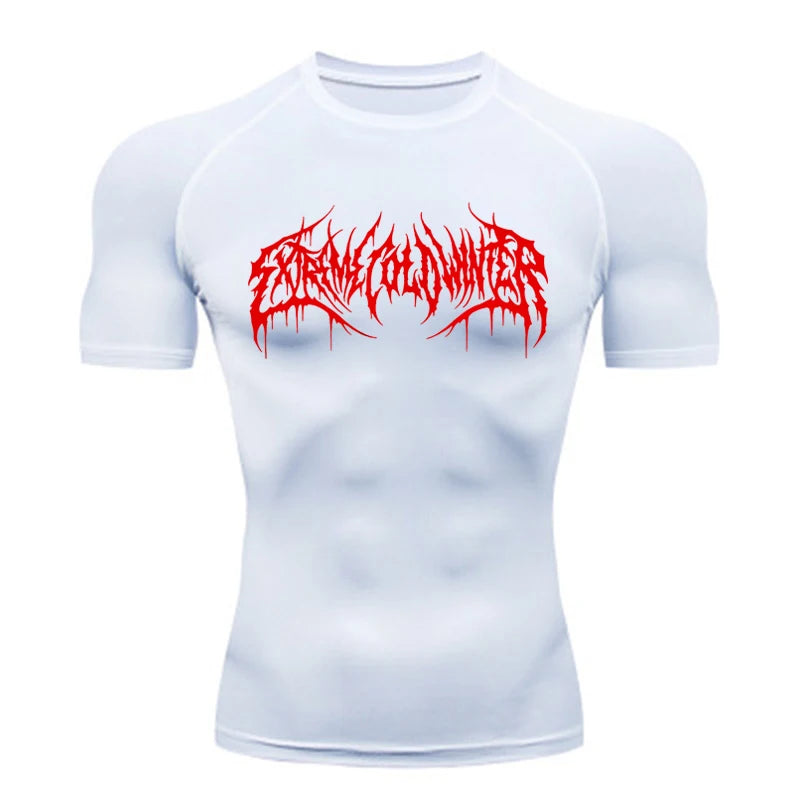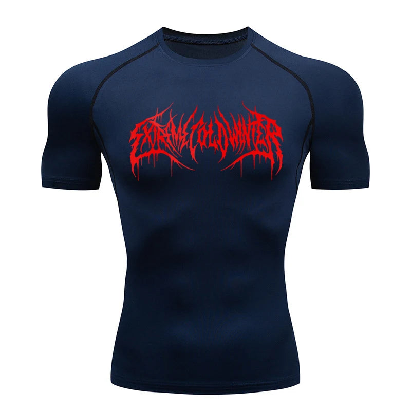 Versatile Wear – Ideal as a standalone shirt or as a base layer under other clothing, the Short Sleeve Revena™ "Extreme Cold Winter" Pattern Elastic Compression Shirt is perfect for running, weightlifting, cycling, hiking, yoga, team sports, and all-weather training, making it suitable for year-round use.