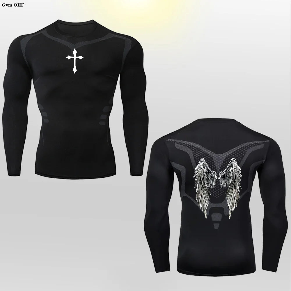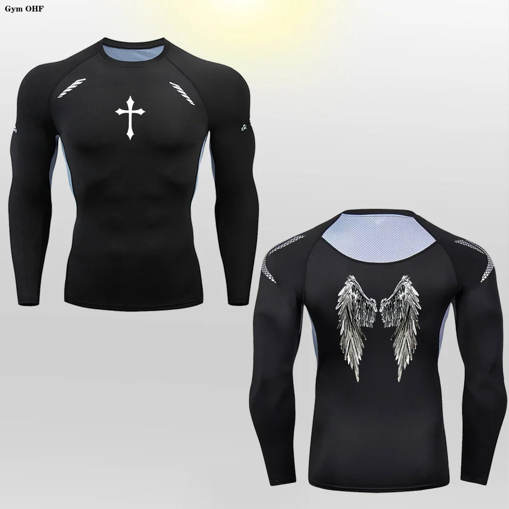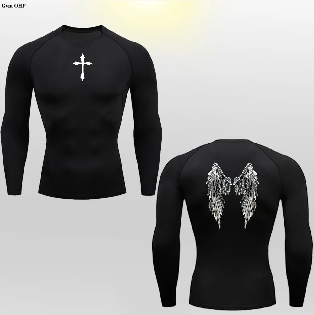 Versatile Wear – Ideal as a standalone shirt or as a base layer under other clothing, the Long Sleeve Revena™ "Angel" Pattern Elastic Compression Shirt is perfect for running, weightlifting, cycling, hiking, yoga, team sports, and all-weather training, making it suitable for year-round use.