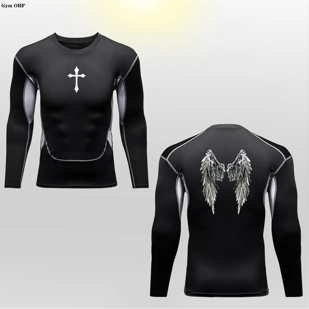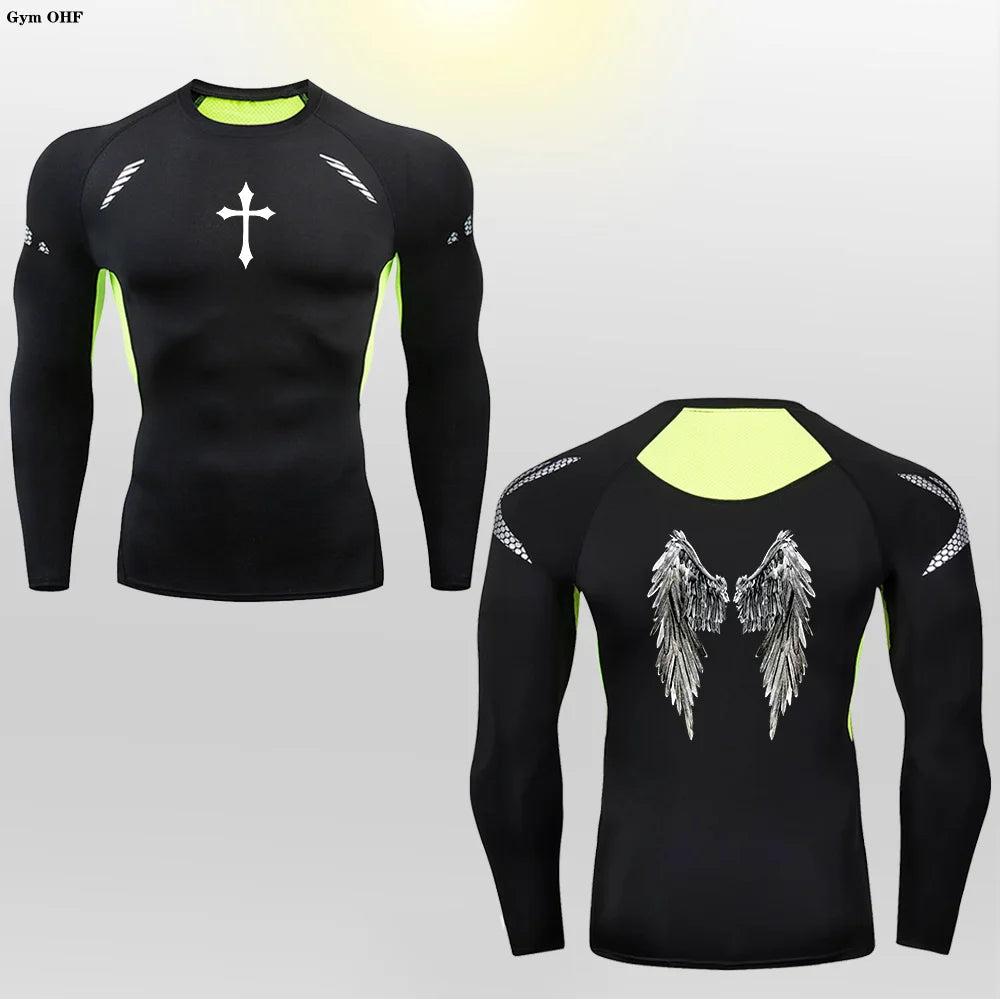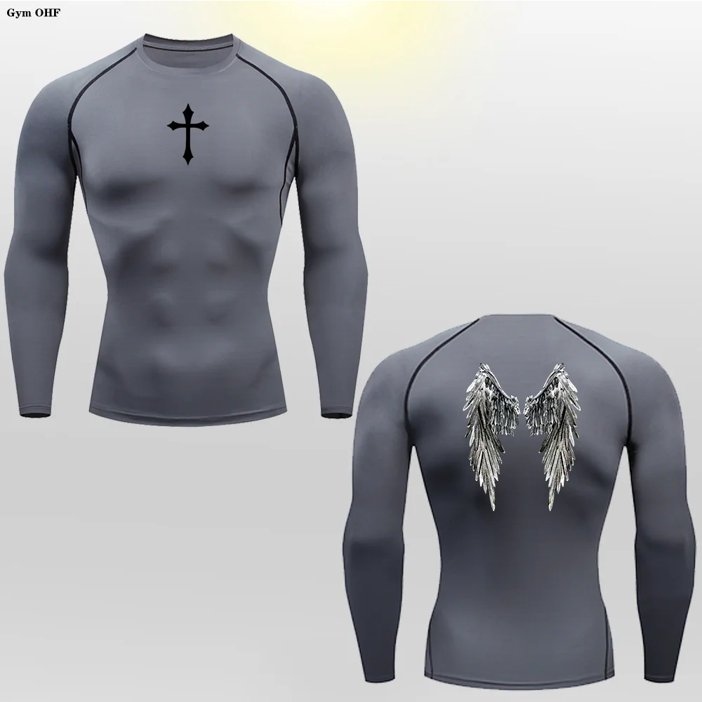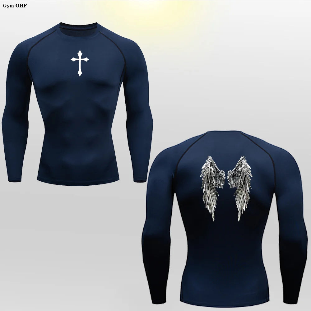 Versatile Wear – Ideal as a standalone shirt or as a base layer under other clothing, the Long Sleeve Revena™ "Angel" Pattern Elastic Compression Shirt is perfect for running, weightlifting, cycling, hiking, yoga, team sports, and all-weather training, making it suitable for year-round use.