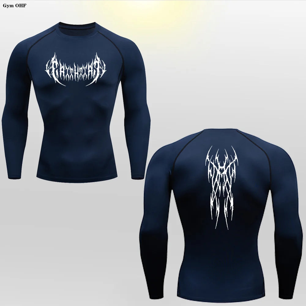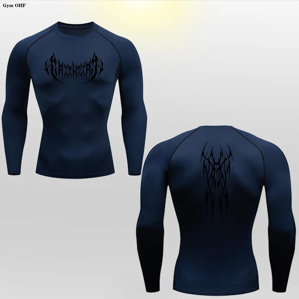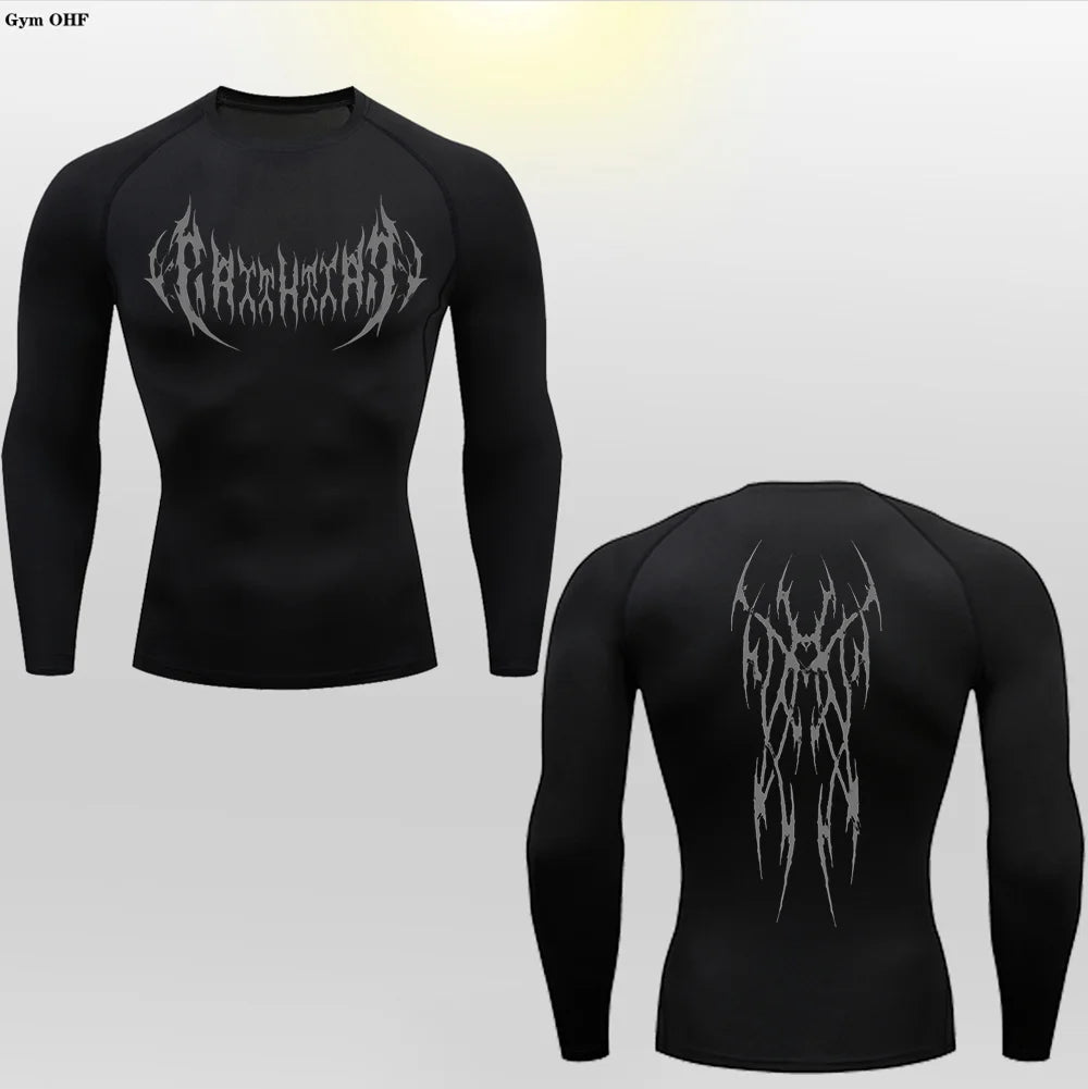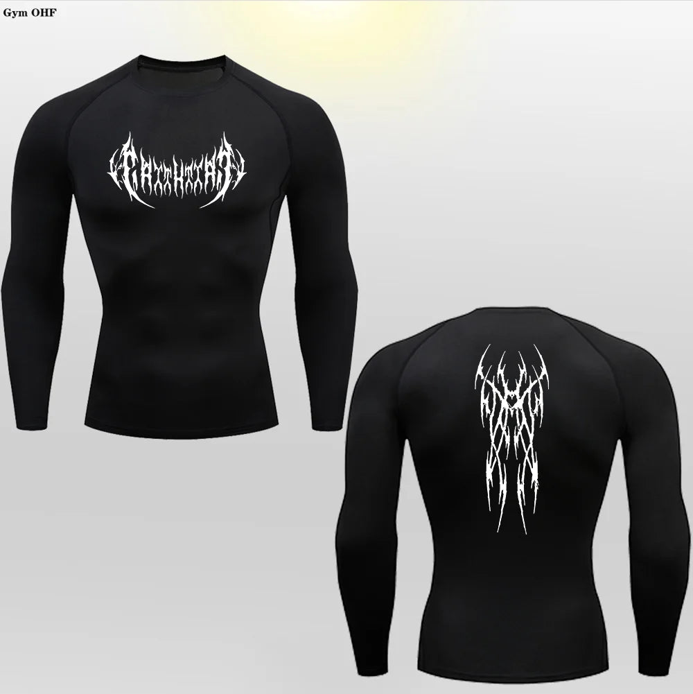 Versatile Wear – Ideal as a standalone shirt or as a base layer under other clothing, the Long Sleeve Revena™ "Gothicah" Pattern Elastic Compression Shirt is perfect for running, weightlifting, cycling, hiking, yoga, team sports, and all-weather training, making it suitable for year-round use.